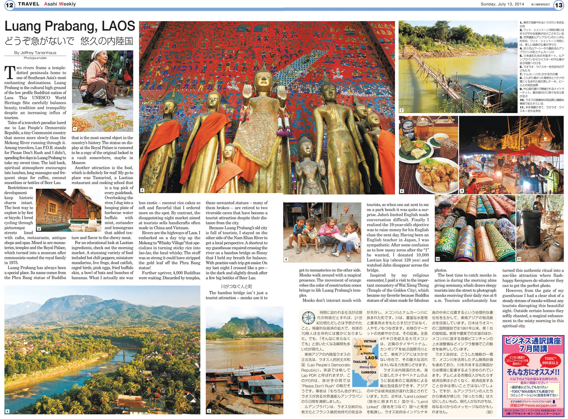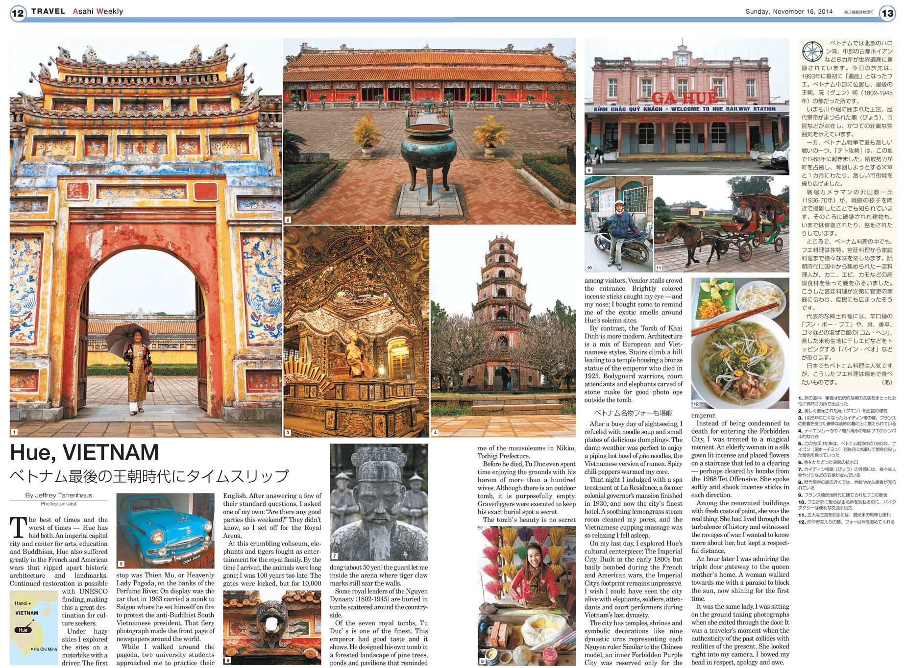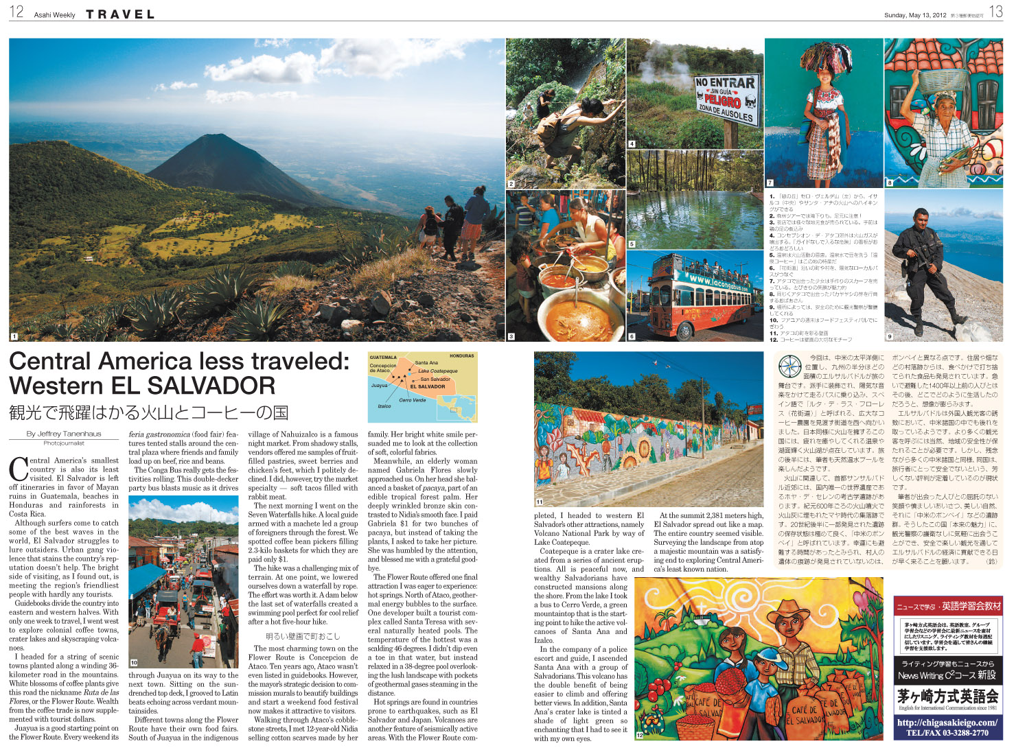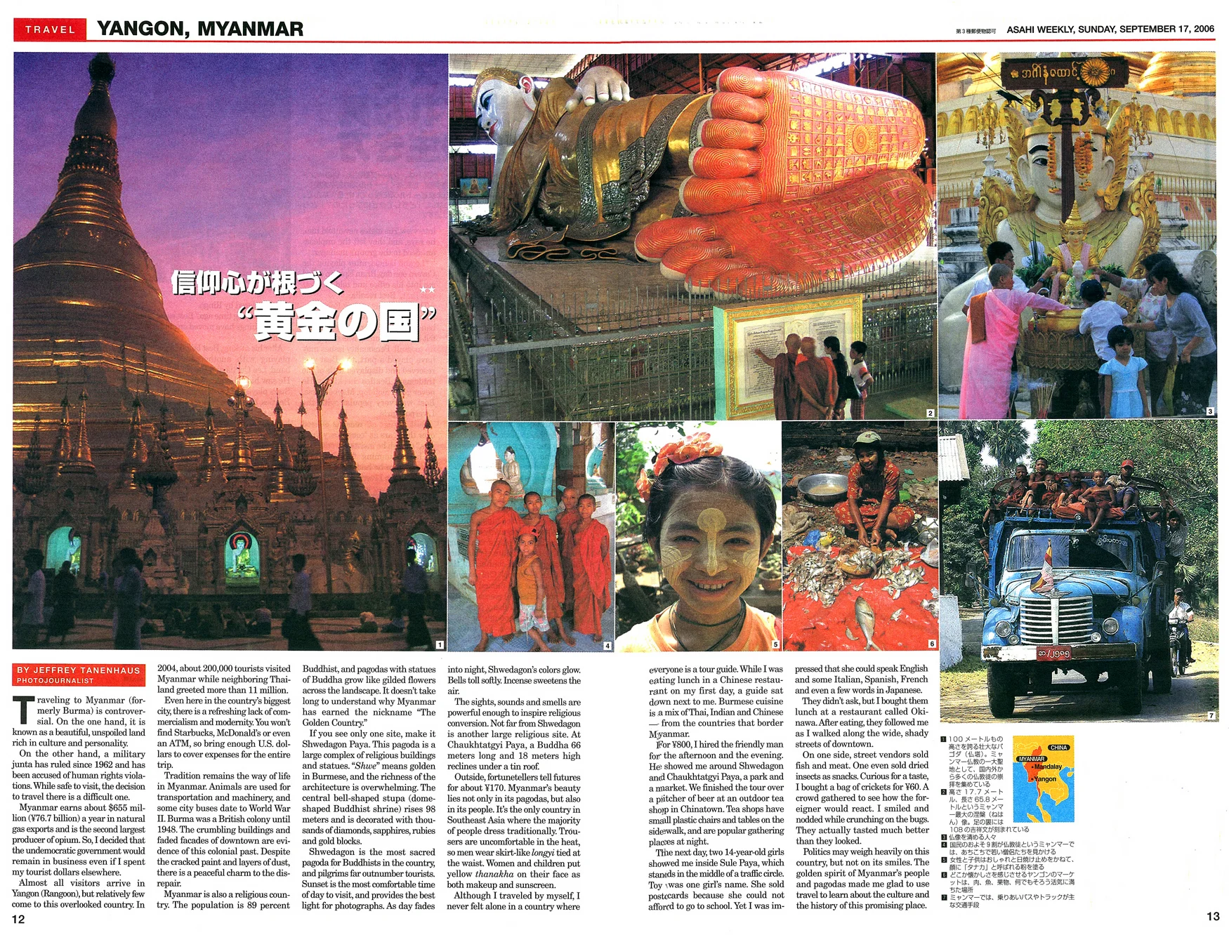 Since 2006, my articles and photos from around the world have been featured in Asahi Weekly,an English language supplement to Japan's Asahi Shimbun newspaper.今日どこへ行くかしたいですか?Where do you want to go today?