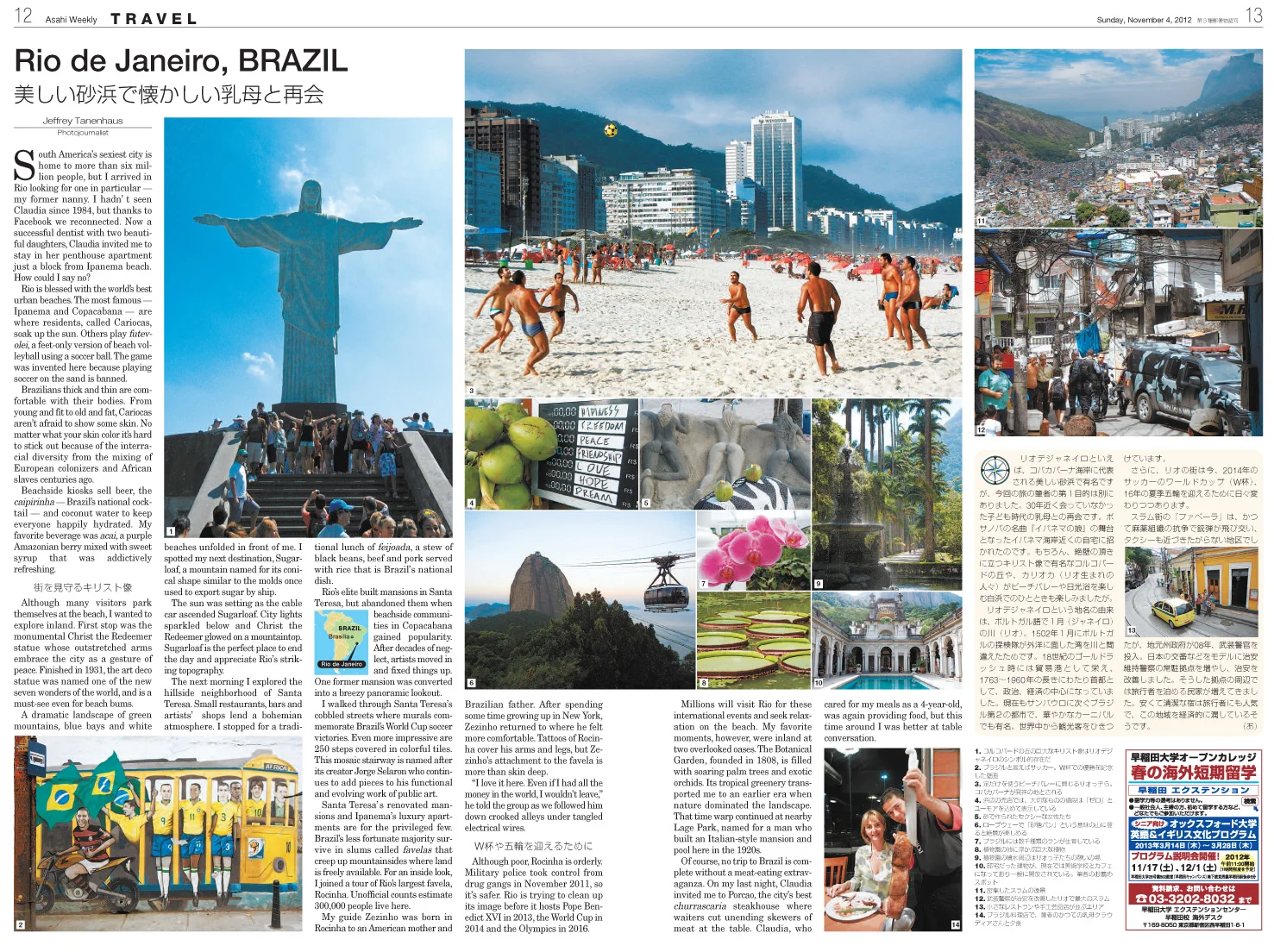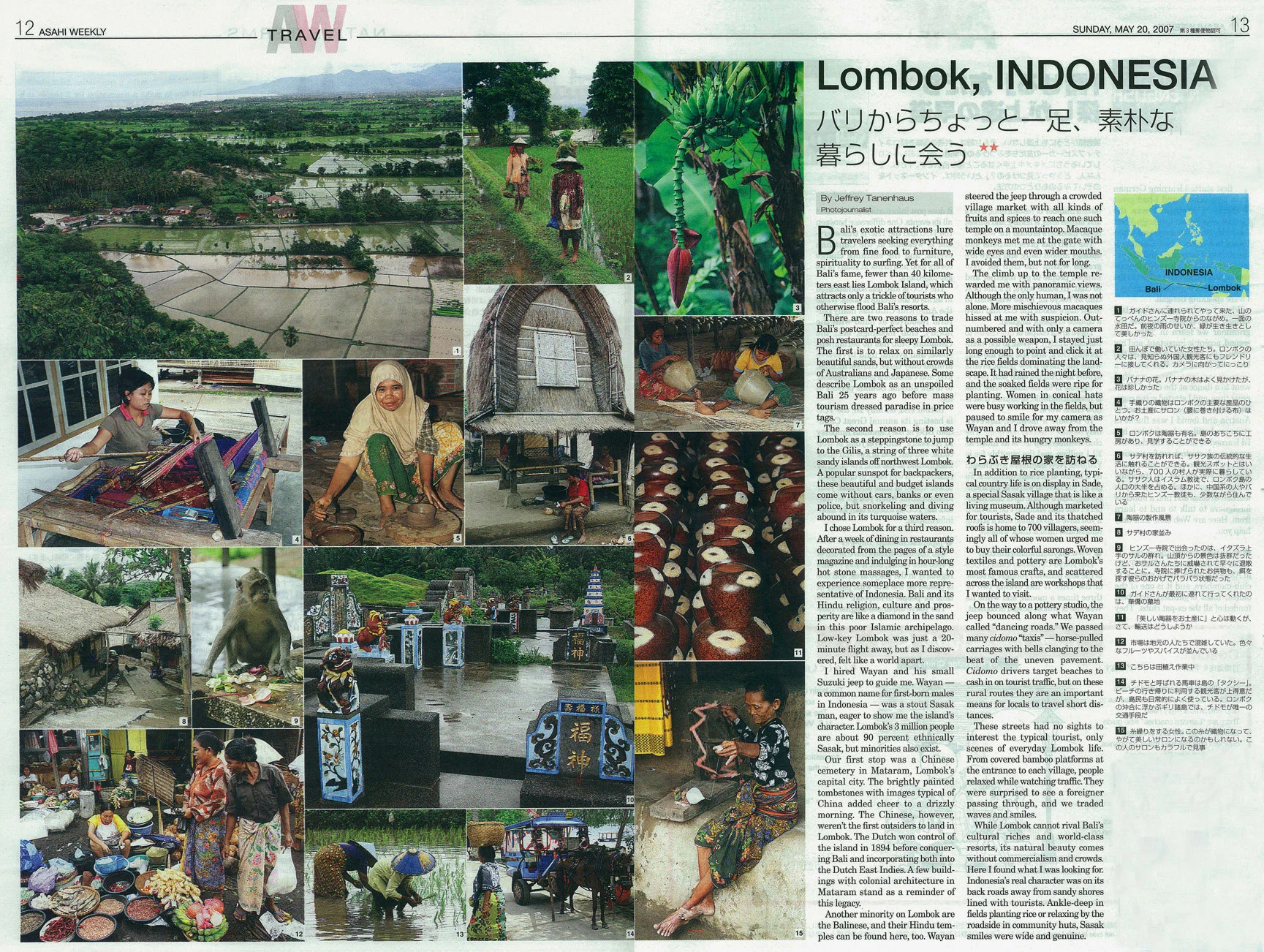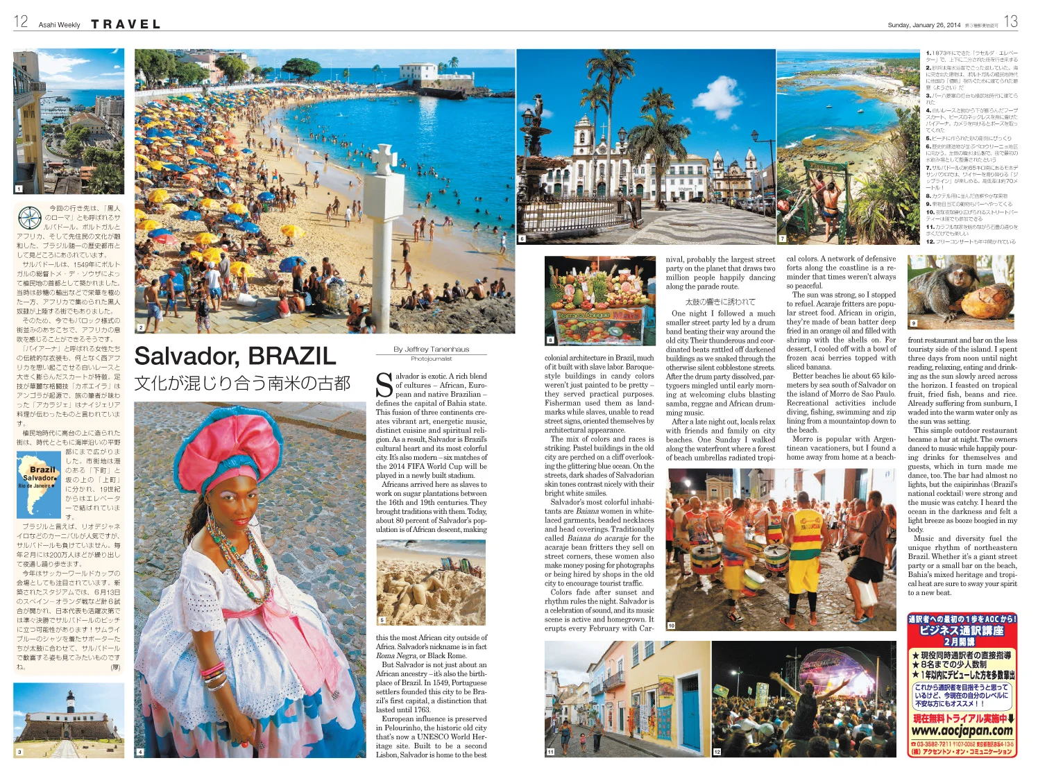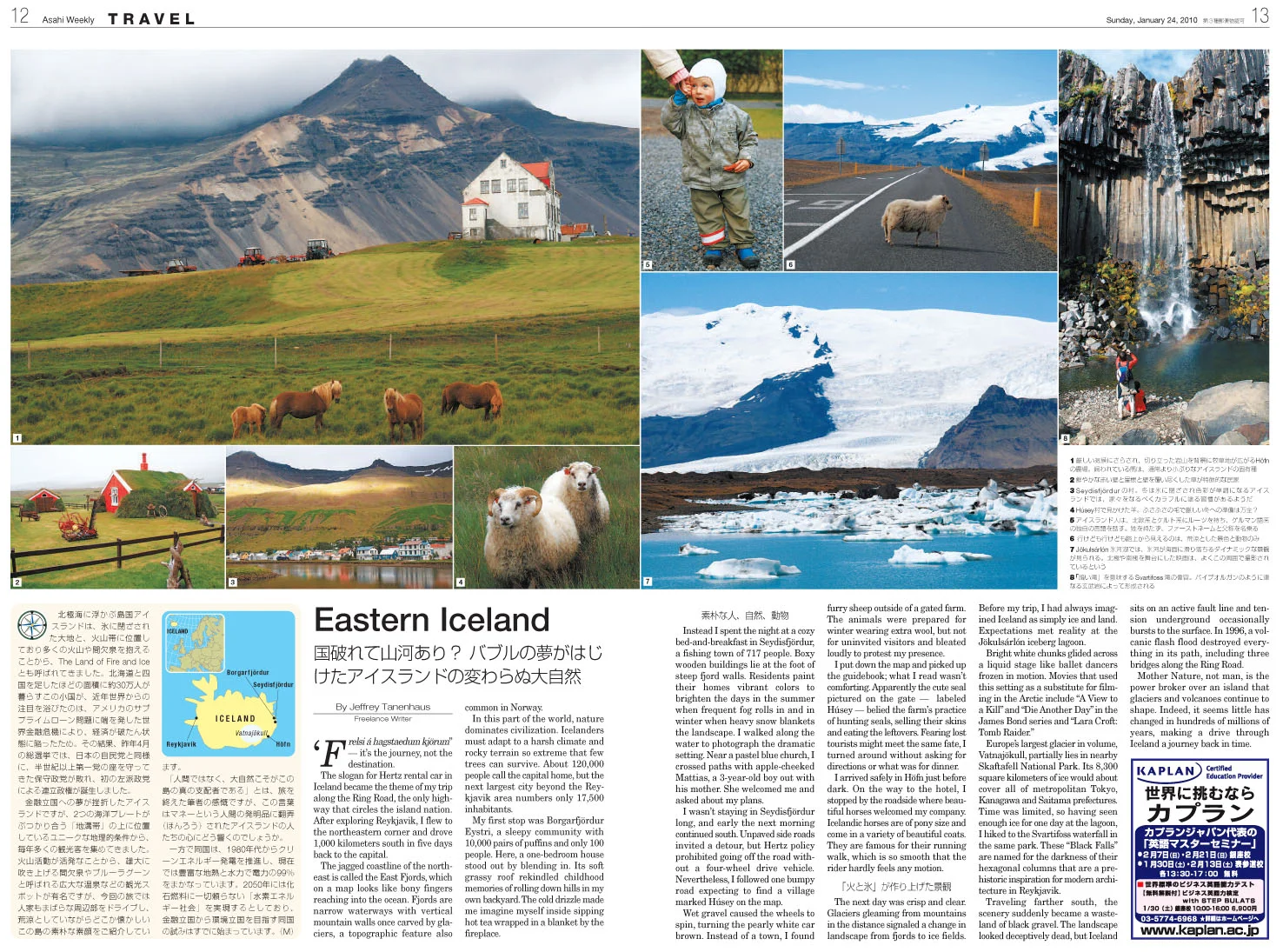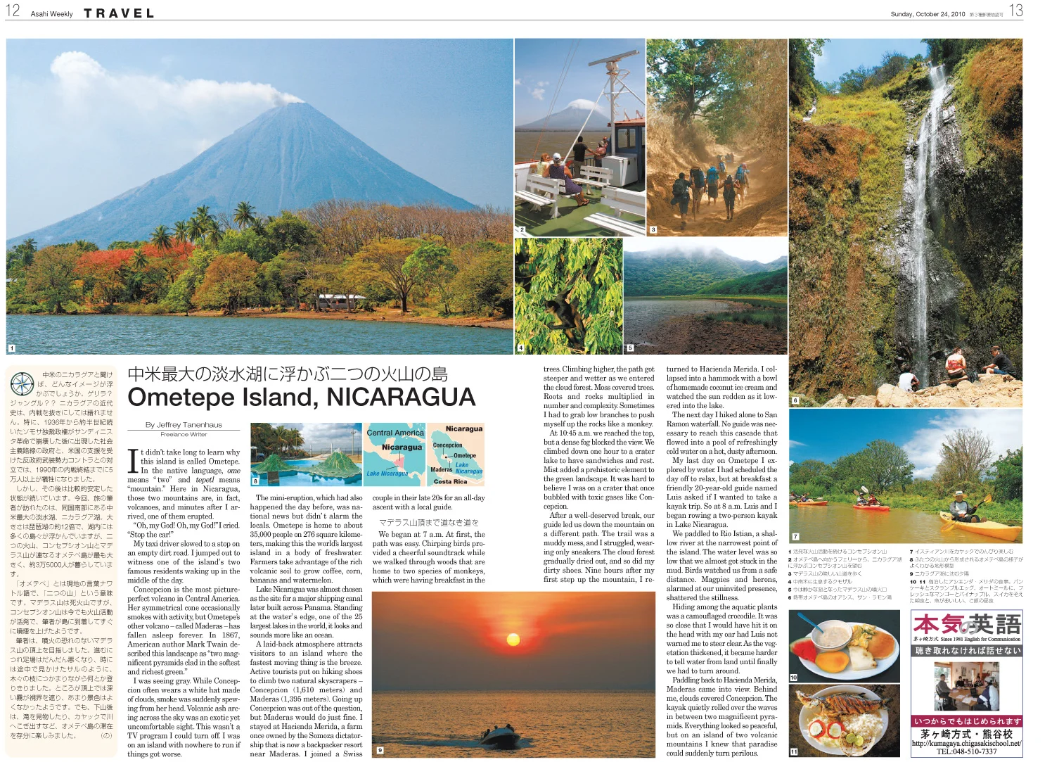 Since 2006, my articles and photos from around the world have been featured in Asahi Weekly,an English language supplement to Japan's Asahi Shimbun newspaper.今日どこへ行くかしたいですか?Where do you want to go today?